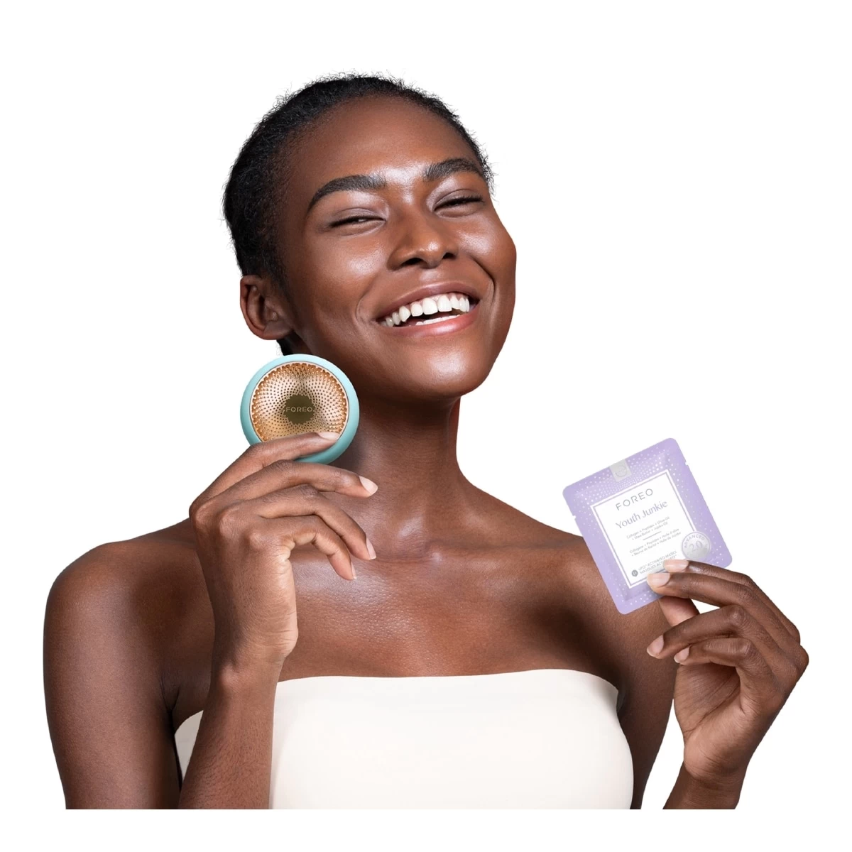 Restaurez l’eau de la peau et stimulez la production de collagène en seulement 2 minutes, pendant lesquelles le masque améliore l’élasticité, réduit les ridules et vous rajeunit, pour une peau visiblement plus lisse, à l’aspect plus jeune. Appréciez la senteur exaltante, attrayante et agréablement sucrée, avec la juste dose de notes florales et d’agrumes, et la formule veloutée semi-transparente, douce et laiteuse dont le tissu en Tencel et en algues entièrement biodégradable est imprégnée. La formule régénérante Youth Junkie 2.0, dont il a été prouvé cliniquement qu’elle hydrate en profondeur pendant jusqu’à 8 heures, est disponible en lot de 6 sachets et est compatible avec tous les appareils de la gamme UFO™.